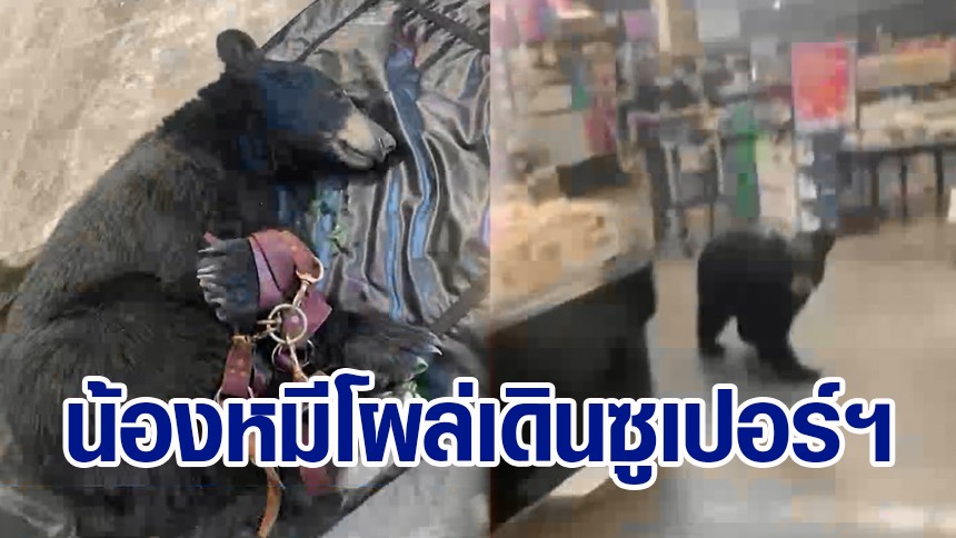 "หมี" โผล่ซูเปอร์มาร์เก็ตสหรัฐฯ ทอดน่องส่องชั้นวางสินค้า ไม่หวั่นสายตามนุษย์