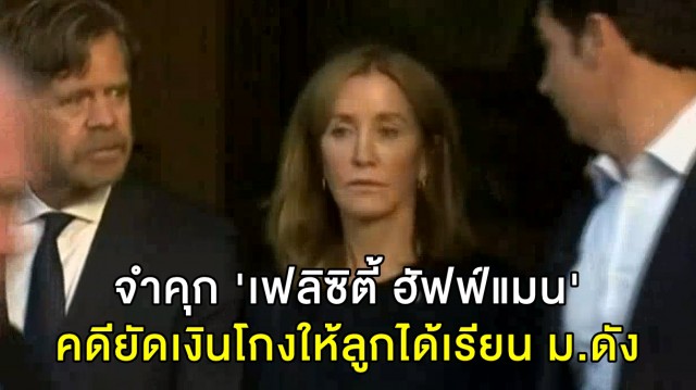 คดีอื้อฉาวในสหรัฐฯ กรณีที่บรรดาผู้ปกครองคนดังจ่ายเงินเพื่อให้ลูกได้เข้าเรียนมหาวิทยาลัยชื่อดังในสหรัฐฯ โดยหนึ่งในนั้นมี เฟลิซิตี้ ฮัฟฟ์แมน (Felicity Huffman) นักแสดงจากซีรีส์เรื่อง เดสเพอเรท เฮาส์ไวฟ์ (The Desperate Housewives) วัย 56 ปีด้วย และล่าสุดศาลได้สั่งจำคุกเธอเป็นเวลา 14 วัน
