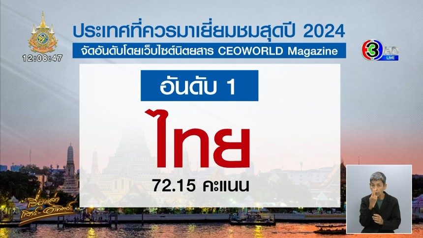 ยืน1 ของจริง! ไทยคว้าอันดับ 1 ของโลก ประเทศที่ควรมาเยี่ยมชมสุดปี 2024