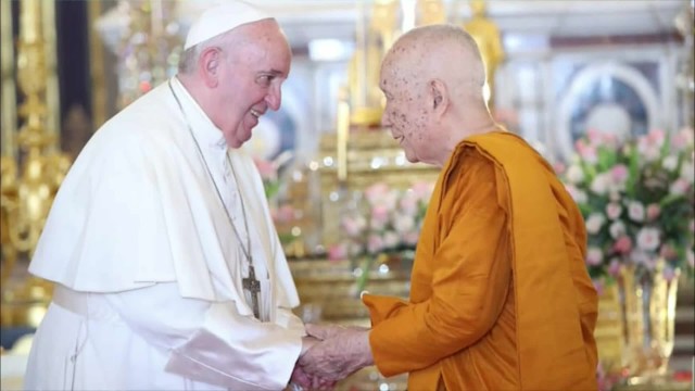 เมื่อ ๓๕ ปีล่วงมาแล้ว ณ พระอุโบสถ วัดราชบพิธสถิตมหาสีมาราม เฉพาะพระพักตร์พระพุทธอังคีรส ประธานพระอุโบสถแห่งนี้ สมเด็จพระอุปัชฌายะของอาตมภาพ คือสมเด็จพระสังฆราชเจ้า กรมหลวงชินวราลงกรณ ได้เสด็จลงทรงรับสมเด็จพระสันตะปาปา ยอห์น ปอล ที่ ๒ เป็นครั้งแรกในประวัติศาสตร์โลก ที่ประมุขแห่งศาสนจักรโรมันคาทอลิก เสด็จมาทรงเยี่ยมประมุขแห่งพุทธจักรไทย ณ ราชอาณาจักรไทย ภาพเหตุการณ์ในวันนั้น ยังคงประทับอยู่ในความทรงจำของอาตมภาพ ผู้มีโอกาสได้เฝ้าอยู่ในการดังกล่าวด้วย ทั้งสองพระองค์ทรงปราศรัยกัน ทรงแสดงพระอัธยาศัยอันงามต่อกัน บนพื้นฐานแห่งพระเมตตาจิตอย่างแท้จริง ในฐานะนักบุญผู้ประเสริฐแห่งสองศาสนา ซึ่งมุ่งหมายจะแผ่ความปรารถนาดีอย่างจริงใจ ไปสู่ทุกชีวิตอย่างไม่มีประมาณ เป็นอุดมการณ์ร่วมกัน