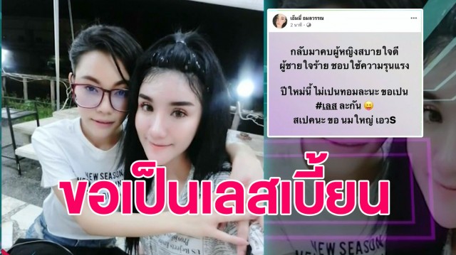 โดยสาวเอมมี่ได้โพสต์ข้อความดังกล่าวในอินสตราแกรมไว้ว่า “กลับมาคบผู้หญิงสบายใจดี ผู้ชายใจร้ายชอบใช้ความรุนแรง ปีใหม่นี้ไม่เป็นทอมนะ ขอเป็นเลสละกัน สเปคนะ ขอนมใหญ่ เอว S”