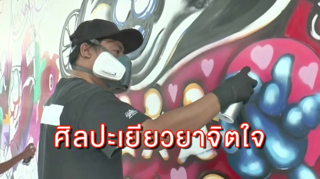 กลุ่มศิลปินกราฟฟิตี้รวมตัวกันวาดภาพศิลปะบนฝาผนังห้างเทอ์มินอล21โคราช ให้กำลังใจชาวโคราชก้าวผ่านพ้นเหตุการณ์ร้ายไปด้วยกัน