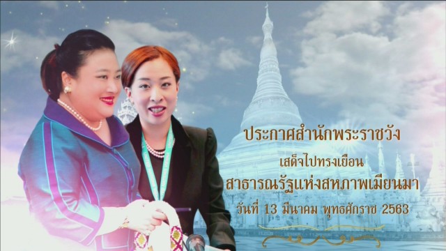 ประกาศสำนักพระราชวัง พระองค์เจ้าโสมสวลีฯ เสด็จพร้อมด้วย เจ้าฟ้าพัชรกิติยาภาฯ ไปทรงเยือนสาธารณรัฐแห่งสหภาพเมียนมา
