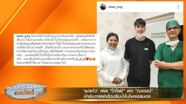 'แม่แก้ว’ อัพเดทการผ่าตัดปรับน้ำในโพรงสมอง 'ป๊าโยชิ' พ่อ 'ณเดชน์' ผ่านไปด้วยดี ตอนนี้กลับบ้านได้แล้ว