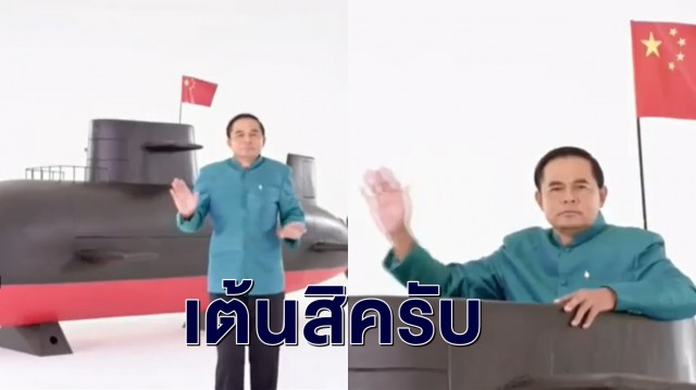 ในโลกออนไลน์มีการแชร์คลิป ก๊อปปี้โชว์หน้าเหมือน พล.อ.ประยุทธ์ จันทร์โอชา นายกรัฐมนตรี กำลังเต้นอย่างมีความสุขข้างเรือดำน้ำที่มีธงชาติจีนติดอยู่