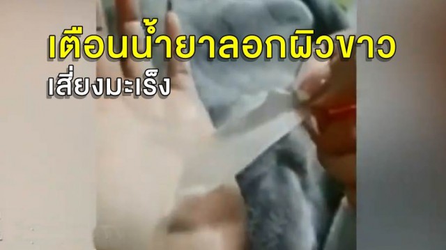 "น้ำยาลอกผิวขาว เมื่อก่อนวัยรุ่นเอามาลอกแขนลอกขา เดี๋ยวนี้เอามาลอกหน้าเลยเหรอครับ อันตรายมาก ๆ เด้อ