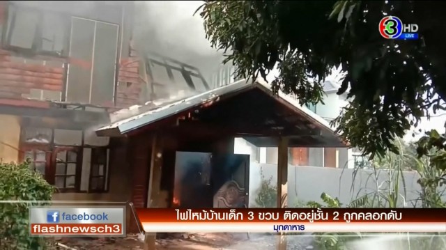เกิดเหตุเพลิงไหม้บ้านไม้ 2 ชั้น ที่บ้านบุ่งอุทัย ม.10 ต.นาสีนวน อ.เมือง จ.มุกดาหาร รถดับเพลิง 2 คันระดมฉีดน้ำนาน 30 นาที เพลิงจึงสงบ ตัวบ้านเสียหายทั้งหลัง ที่ชั้นพบศพเด็กชายวัย 3 ขวบ ถูกไฟคลอกเสียชีวิต ญาติเผยเด็กนอนในบ้านคนเดียว กว่าจะรู้ตัวไฟก็โหมไหม้อย่างหนักแล้วจึงช่วยไม่ทัน