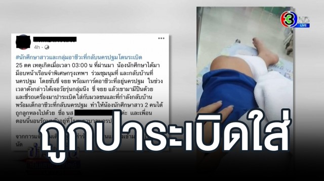 ตำรวจเร่งตรวจสอบเหตุ 2 วัยรุ่นสาวขี่รถจักรยานยนต์จากนครปฐมไปร่วมชุมนุมที่เรือนจำพิเศษกรุงเทพ ขากลับถูกคนไม่หวังปาวัตถุคล้ายระเบิดใส่ ทำให้ได้รับบาดเจ็บ