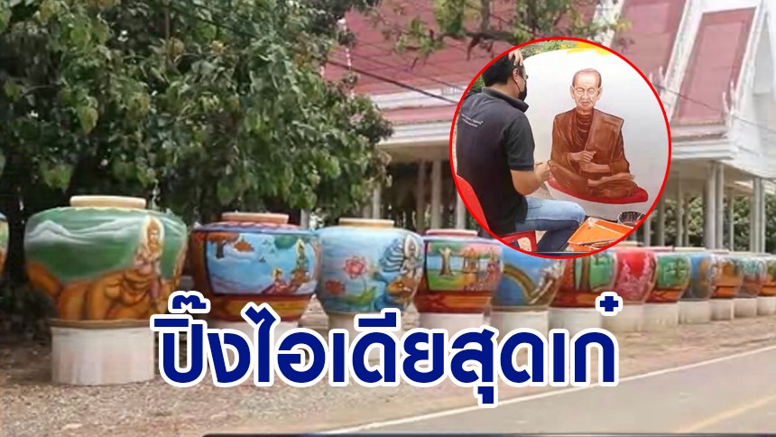 เจ้าอาวาสหัวใสปิ๊งไอเดียสุดเก๋ รับบริจาคโอ่งน้ำมันนำมาเขียนลายเป็นกำแพง