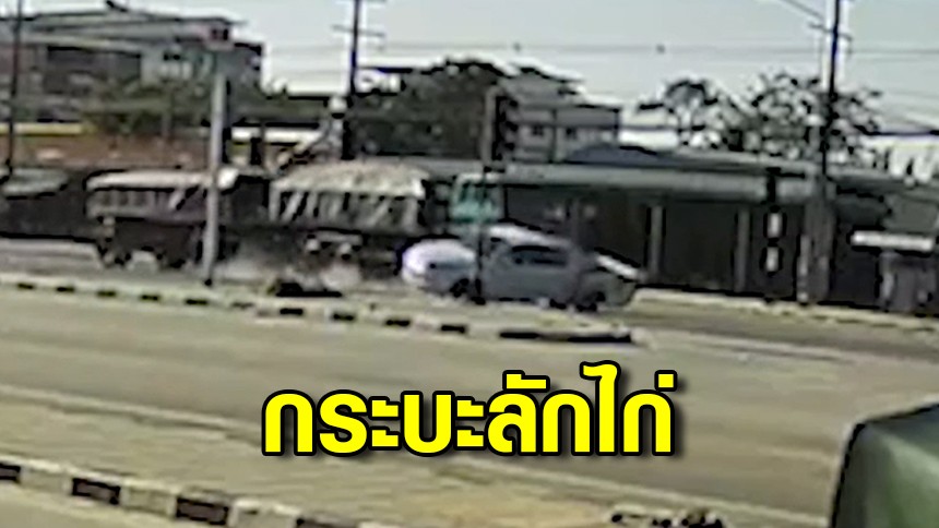 กระบะลักไก่กลับรถ พ่วง 18 ล้อเบรกไม่ทัน พุ่งชนยับกลางลำ
