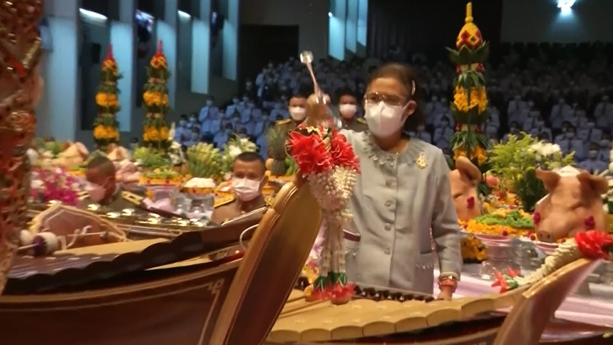 วันนี้ เวลา 10.02 น. สมเด็จพระกนิษฐาธิราชเจ้า กรมสมเด็จพระเทพรัตนราชสุดาฯ สยามบรมราชกุมารี เสด็จพระราชดำเนิน ไปยังหอประชุมโรงเรียนนายร้อยพระจุลจอมเกล้า อำเภอเมือง จังหวัดนครนายก ทรงเป็นประธานในพิธีไหว้ครูดนตรีไทย โรงเรียนนายร้อยพระจุลจอมเกล้า ประจำปี 2565