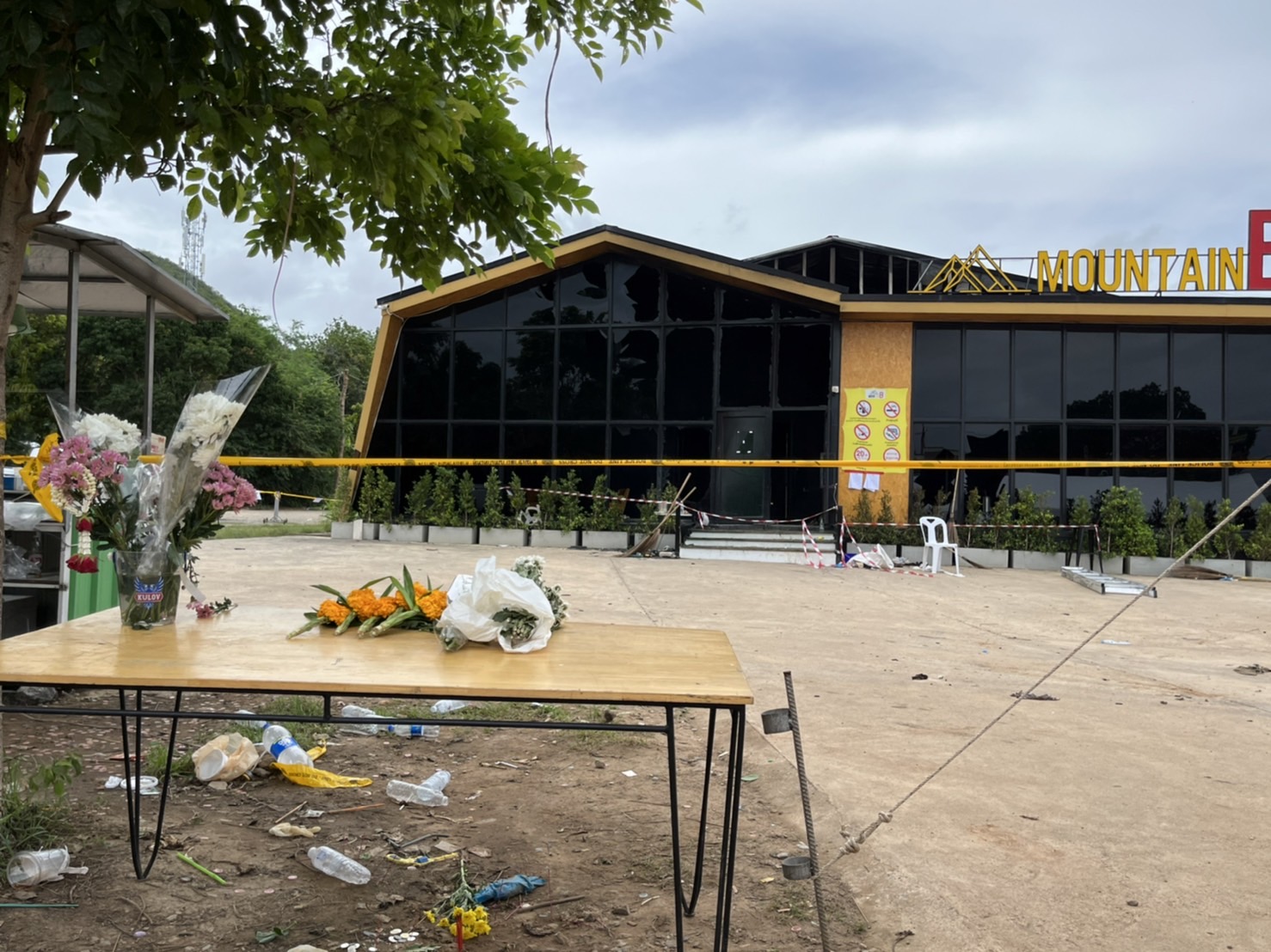 พนักงาน เมาท์เทน บี ผับ วางพวงมาลัยไว้อาลัยหน้า ผับ
