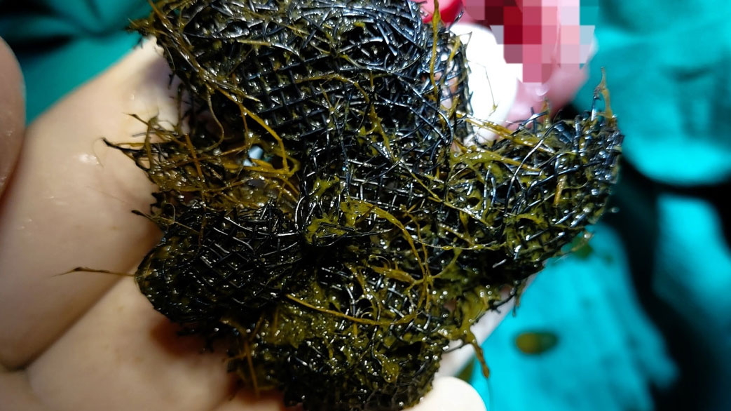 วันนี้เลยผ่ากระเพาะ เจอต้นเหตุคือ มุ้งลวดจำนวนมากอัดในกระเพาะอาหาร นำออกมาให้หมดเรียบร้อยค่ะ