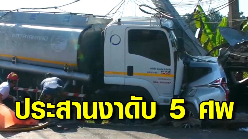 สลด ปาเจโร ไปทอดกฐิน ขับเข้าทางวันเวย์ ประสานงารถน้ำมัน ดับคาที่ 5 ศพ