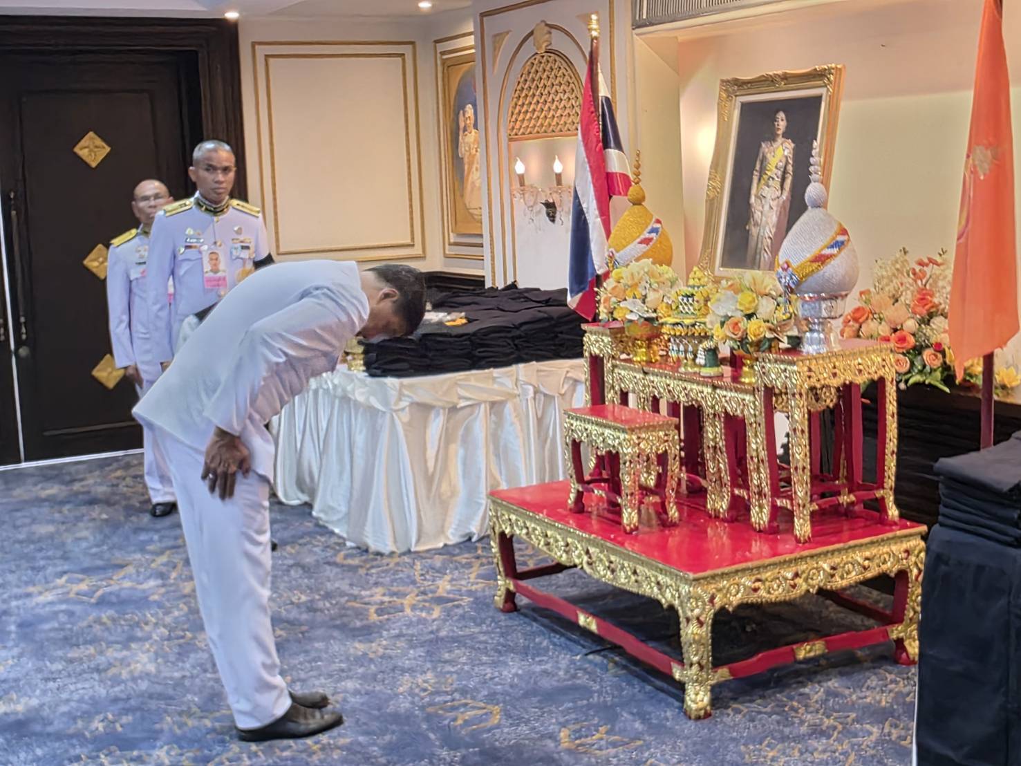 เวลา 12 นาฬิกา 38 นาที วันนี้ สมเด็จพระเจ้าลูกเธอ เจ้าฟ้าสิริวัณณวรี นารีรัตนราชกัญญา โปรดให้ พลเอก ศิวะ ภระมรทัต กรมวังผู้ใหญ่ ประจำวังศุโขทัย และนางศรินดา จามรมาน เลขานุการส่วนพระองค์ฯ เป็นผู้แทนพระองค์ เชิญสิ่งของพระราชทาน ได้แก่ ผ้าถุงสีดำทรงออกแบบ จำนวน 2,000 ผืน, ผ้าถุงสีดำทรงออกแบบ สำหรับเด็ก จำนวน 40 ผืน, ถุงใส่รองเท้า จำนวน 1,000 ถุง และเข็มกลัดริบบิ้นสีดำติดดอกไม้ประดิษฐ์ จำนวน 200 ชิ้น ไปมอบแก่ นายชัชชาติ สิทธิพันธุ์ ผู้ว่าราชการกรุงเทพมหานคร ณ ห้องอมรพิมาน ศาลาว่าการกรุงเทพมหานคร เขตพระนคร เพื่อให้สตรีไทยและนักท่องเที่ยวชาวต่างชาติ ยืมสวมใส่อย่างถูกต้องตามจารีตประเพณี ก่อนเข้ากราบถวายบังคมพระบรมศพ สมเด็จพระนางเจ้าสิริกิติ์ พระบรมราชินีนาถ พระบรมราชชนนีพันปีหลวง ณ พระที่นั่งดุสิตมหาปราสาท
