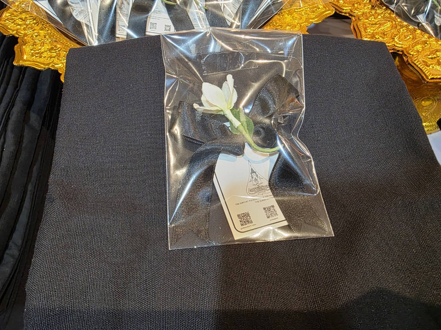 เจ้าฟ้าสิริวัณณวรีฯ พระราชทานผ้าถุงสีดำ ทรงออกแบบถุงผ้า และเข็มกลัดริบบิ้นสีดำ แก่ผู้ว่าฯ กทม.เพื่อให้ประชาชนยืมสวมใส่ก่อนเข้ากราบถวายบังคมพระบรมศพ