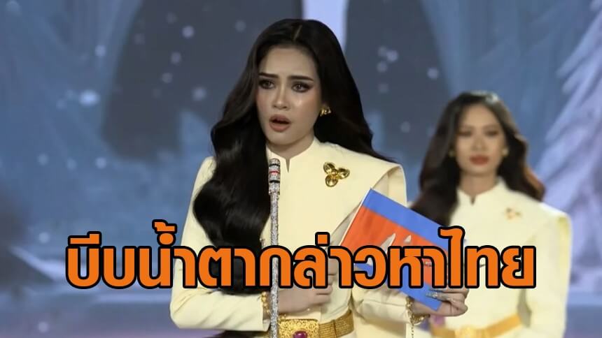 'มิสทีนกัมพูชา' บีบน้ำตากลางเวที กล่าวหาไทยเริ่มสงคราม ทวงคืนเชลยศึก ทำคว้ามง