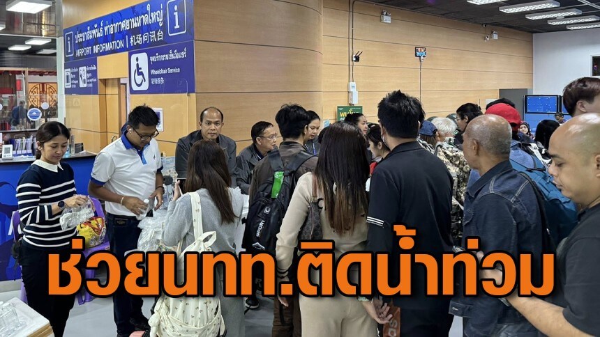 นักท่องเที่ยวไทย–ต่างชาติ ประสบภัยน้ำท่วม ติดค้างนับพันคนในโรงแรม-สนามบิน เร่งส่งอาหาร–น้ำ ช่วยเหลือ