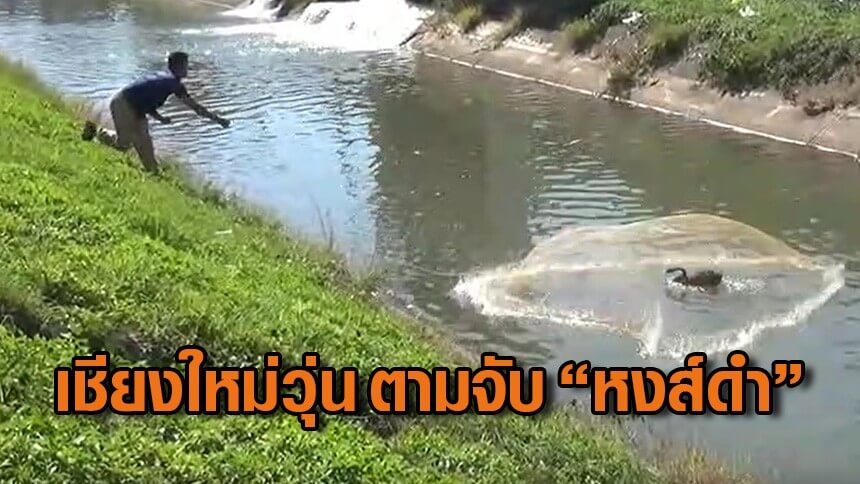 เชียงใหม่วุ่น เจ้าหน้าที่ร่วมกันลงเรือพาย ตามจับ “หงส์ดำ” จำนวน 2 ตัว จากอ่างเก็บน้ำหนองเขียว สวนสาธารณะองค์การบริหารส่วนจังหวัดเชียงใหม่ หลังตกใจเสียงพลุ บินหนีไปไกลโผล่ไปถึงอำเภอสันกำแพง