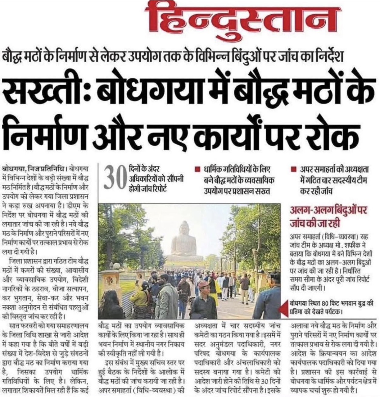 ผู้สื่อข่าวรายงานว่า สำนักข่าวท้องถิ่นของอินเดีย มีการรายงานข่าวการสอบสวน วัดต่างชาติกว่า 50 แห่ง ในพุทธคยา ซึ่งจำนวนมากเป็นวัดไทย หลังได้รับการร้องเรียนจากกลุ่มธุรกิจในพื้นที่โดยเฉพาะ สมาคมผู้ประกอบการโรงแรมในพุทธคยา โดยอ้างว่าวัดบางแห่งมีการเปิดห้องเช่า ให้นักท่องเที่ยวและผู้แสวงบุญ รวมถึงมีการขายของที่ระลึกต่างๆทำให้รัฐและธุรกิจท้องถิ่นของอินเดียสูญเสียรายได้ และบางแห่งมีการบุกรุกที่ดินสาธารณะ การซื้อขายที่ดินผิดกฎหมายด้วย ทำให้วัดที่อยู่ระหว่างการก่อสร้างต้องถูกระงับ โดยปลัดรัฐบาลรัฐพิหารได้สั่งการให้มีการไต่สวนกรณีดังกล่าวภายใน 30 วัน นับตั้งแต่ วันที่ 7 กุมภาพันธ์ ที่ผ่านมา