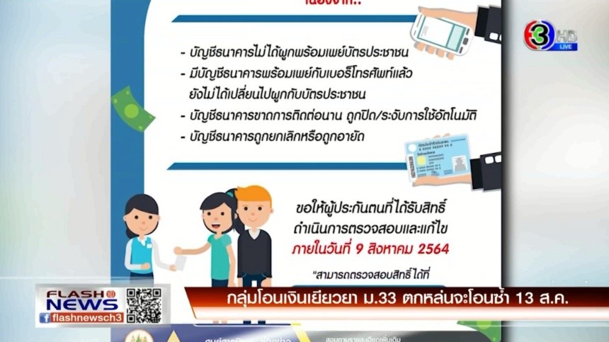 - กลุ่มโอนเงินเยียวยา ม.33 ตกหล่นจะโอนซ้ำ 13 ส.ค.