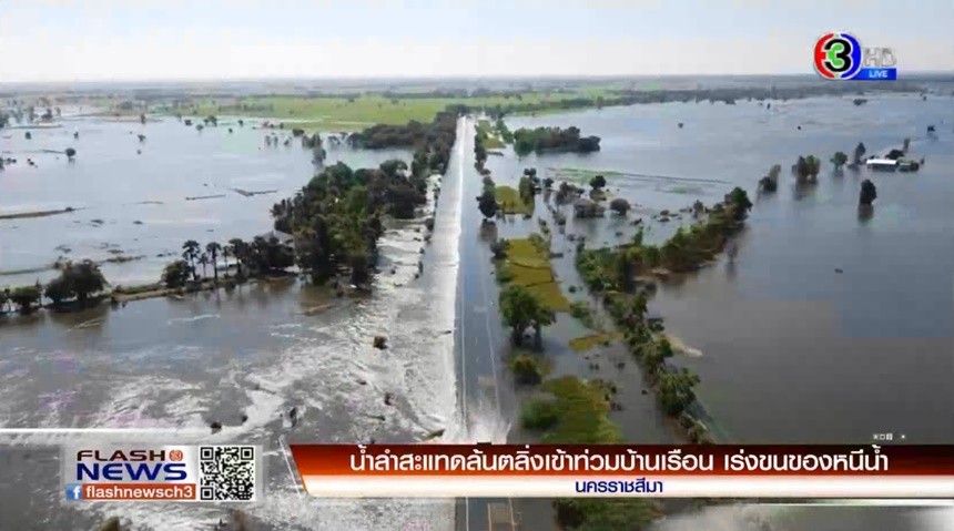 ลำสะแทดที่รับน้ำจากอ่างเก็บลำเชียงไกร ลันตลิ่งเข้าท่วมตำบลกระชอน เภอพิมาย จังหวัดนครราชสีมา ระดับน้ำสูงกว่า 1 เมตร ชาวบ้านต้องเร่งย้ายทรัพย์สินหนีน้ำ ขณะที่สำนักงานชลประทานที่ 8 นครราชสีมา ติดตั้งเครื่องผลักดันน้ำ เพื่อเร่งระบายน้ำลงแม่น้ำมูล ส่วนแม่น้ำชี ที่อำเภอเมือง จังหวัดขอนแก่น สูงขึ้นอีก 60 เซนติเมตร คนร้ายแทงหนุ่มวัยเบญ แนวโน้มเพิ่มขึ้นอีก เพราะยังมีน้ำจากชัยภูมิที่ยังไหลมาไม่หมด ชาวบ้านเร่งย้ายของขึ้นที่สูง