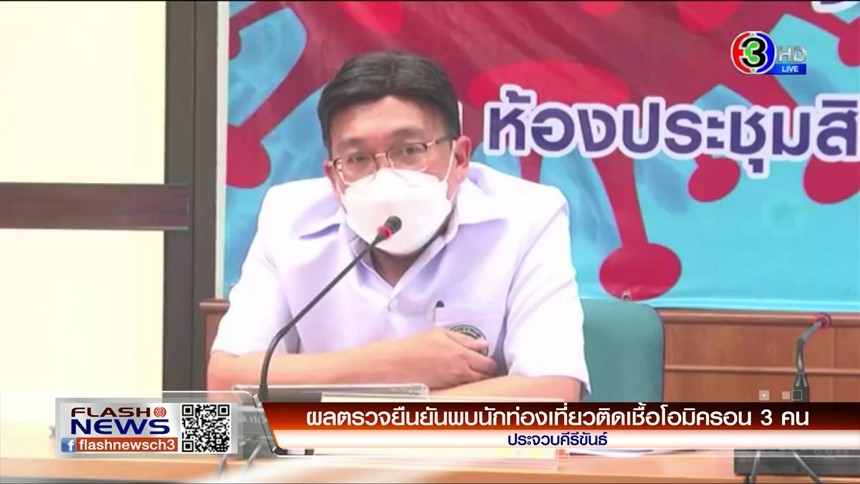 ผู้ว่าราชการจังหวัดประจวบคีรีขันธ์ เผยผลตรวจนักท่องเที่ยวชาวอังกฤษ 3 คน ติดโควิด-19 สายพันธุ์โอมิครอน และรอผลตรวจยืนยันอีก 1 คน พร้อมขอให้ประชาชนชะลอการเดินทางไปต่างประเทศ ภาครัฐขอให้งดจัดกิจกรรมรื่นเริง ส่วนภาคเอกชนที่เตรียมจัดงานปีใหม่ไว้แล้ว ให้เข้มงวดมาตรการ Covid Free Setting โดยขอให้ลดจำนวนคนที่ร่วมงาน และหน่วยงานที่เกี่ยวข้องจะเข้าตรวจสอบทุกระยะ