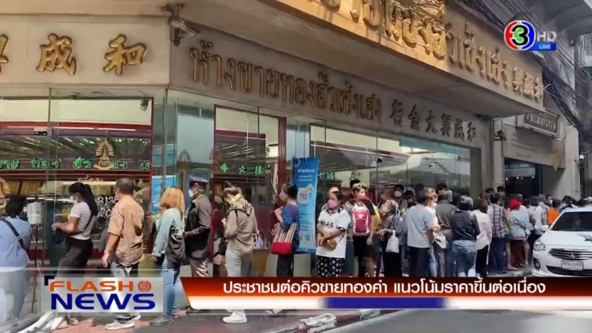 - ประชาชนต่อคิวขายทองคำ แนวโน้มราคาขึ้นต่อเนื่อง