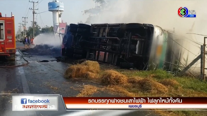 - รถบรรทุกฟางชนเสาไฟฟ้า ไฟลุกไหม้ทั้งคัน