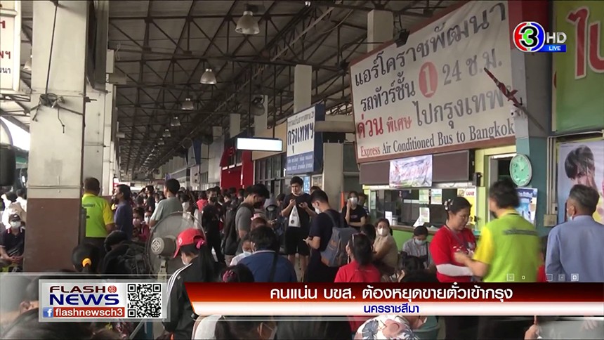 ที่สถานีขนส่งนครราชสีมาแห่งที่ 2 ประชาชนแห่ไปซื้อตั๋วรถโดยสาร เพื่อกลับไปทำงานที่กรุงเทพฯ จนแน่นชานชาลาที่พักผู้โดยสาร และการจราจรบนถนนมิตรภาพที่ติดขัด รถที่ตีกลับจากส่งผู้โดยสารล่าช้า ช่องขายตั๋วต้องประกาศหยุดขายตั๋วเป็นระยะ ขนส่งจังหวัดฯ สั่งเพิ่มรถเป็น 400 เที่ยวต่อวัน ยันไม่มีผู้โดยสารตกค้าง