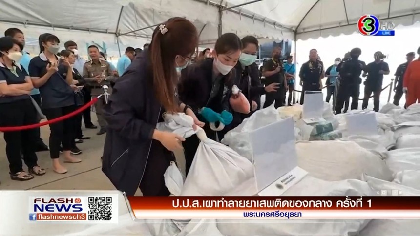 ป.ป.ส.เผาทำลายยาเสพติดกว่า 2 พันกิโลกรัม จาก 7 คดี รวม 187 กระสอบ เป็นยาบ้า 20 ล้านเม็ด ไอซ์ 9.72 กิโลกรัม เฮโรน 7.20 กิโลกรัม และคีตามีน 299 กิโลกรัม ที่นิคมอุตสาหกรรมบางปะอิน พระนครศรีอยุธยา โดยรองเลขาธิการ ป.ป.ส.ระบุว่า ของกลางทั้งหมดถูกเผาด้วยระบบไพโรไลติก อินซิเนอเรชั่น ไร้ควัน ไม่ก่อมลพิษ และไม่มีหลุดออกสู่ภายนอกแน่นอน