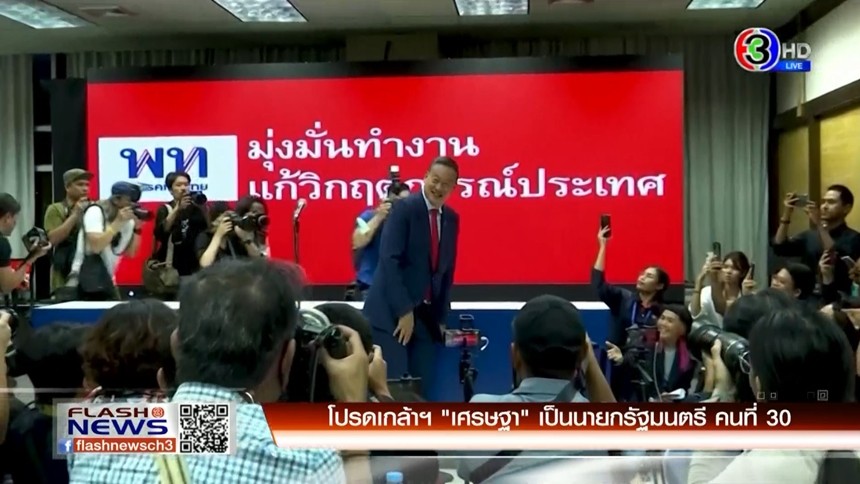 นายคัมภีร์ ดิษฐากรณ์ โฆษกประธานสภาผู้แทนราษฎร เผย พระบาทสมเด็จพระเจ้าอยู่หัว มีพระบมราชโองการโปรดเกล้าโปรดกระหม่อมแต่งตั้ง นายเศรษฐา ทวีสิน เป็นนายกรัฐมนตรี คนที่ 30 แล้ว โดยเลขาธิการสภาผู้แทนราษฎร จะเป็นผู้เชิญพระบมราชโองการไปยังพรรคเพื่อไทย ในเวลา 18.00 น. เพื่อมีพิธีรับพระบรมราชโองการต่อไป