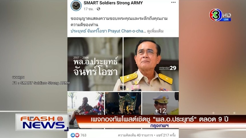 - เพจกองทัพโพสต์เชิดชู ‘พล.อ.ประยุทธ์’ ตลอด 9 ปี