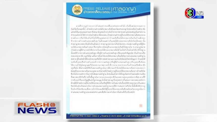 ศาลอาญาออกเอกสารชี้แจง กรณีออกหมายคนบ้าน พลตำรวจเอกสุรเชษฐ์ หักพาล รองผู้บัญชาการตำรวจแห่งชาติ เป็นการออกหมายคนโดยชอบ เป็นไปตามพยานหลักฐาน และไม่จำเป็นต้องคำนึงว่าสถานที่นั้นมีข้าราชการตำแหน่งระดับสูง ครอบครองอาศัยอยู่หรือไม่ แต่กรณีนี้อยู่ระหว่างตรวจสอบว่า จงใจปิดบังข้อเท็จจริงหรือไม่