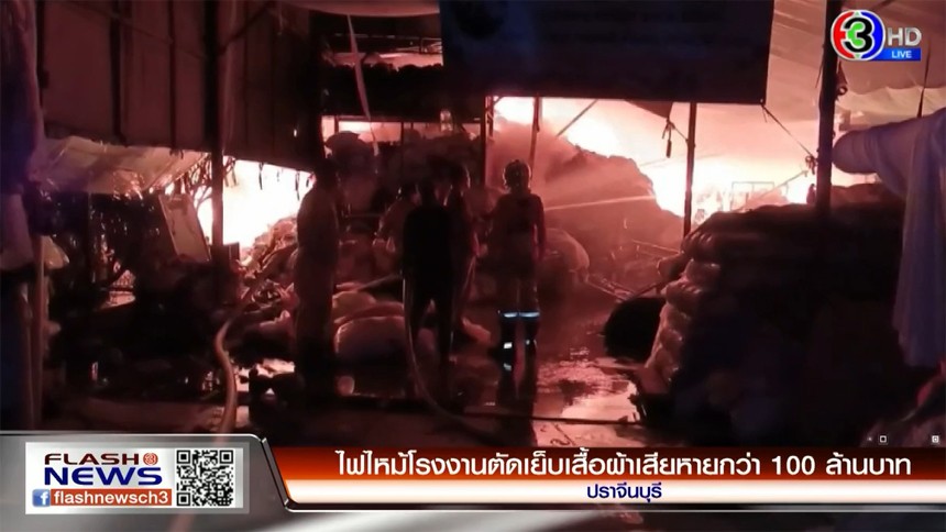 - ไฟไหม้โรงงานตัดเย็บเสื้อผ้าเสียหายกว่า 100 ล้านบาท