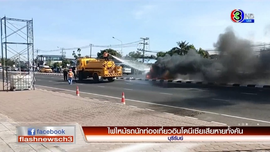 - ไฟไหม้รถนักท่องเที่ยวอินโดนีเซีย เสียหายทั้งคัน