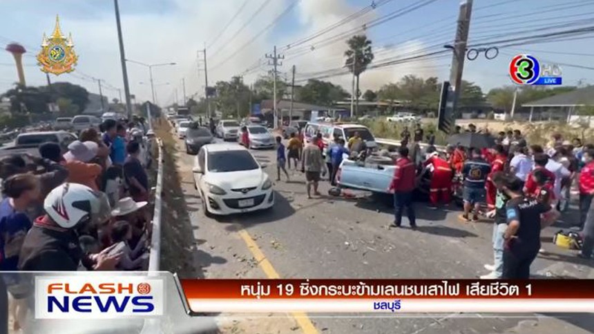 -หนุ่ม19ซิ่งกระบะข้ามเลนชนเสาไฟเสียชีวิต1
