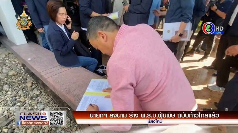 นายกรัฐมนตรี ลงนาม ร่างพระราชบัญญัติฝุ่นพิษฯฉบับของพรรคก้าวไกลแล้ว ระหว่างลงพื้นที่ติดตามความคืบหน้าการแก้ไขปัญหาหมอกควันไฟป่า ที่จังหวัดเชียงใหม่ หลังวานนี้ พรรคก้าวไกลออกมาทักท้วงการลงนาม โดยคณะทำงานนายกรัฐมนตรี ชี้แจงว่าร่างกฎหมายดังกล่าวเพิ่งส่งมาถึง