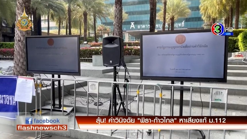 ลุ้น! ศาลรัฐธรรมนูญอ่านคำวินิจฉัยคดีที่พรรคก้าวไกล ถูกร้องหาเสียงแก้ไข ม.112 ว่าเข้าข่ายล้มล้างการปกครองหรือไม่ ขณะนี้ศาลอยู่ระหว่างการประชุม เพื่อแกล้งด้วยวาจา และลงมติในช่วงเวลา 14 นาฬิกา โดยนายชัยธวัช ตลาธน และนายพิธา ลิ้มเจริญรัตน์ จะติดตามคำวินิจฉัยที่รัฐสภา ด้านตำรวจวางกำลังดูแลความเรียบร้อยโดยรอบพื้นที่ศาลรัฐธรรมนูญ
