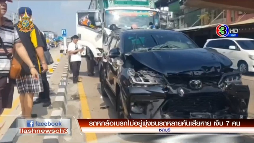 - รถหกล้อเบรกไม่อยู่ พุ่งชนรถหลายคันเสียหาย เจ็บ 7 คน
