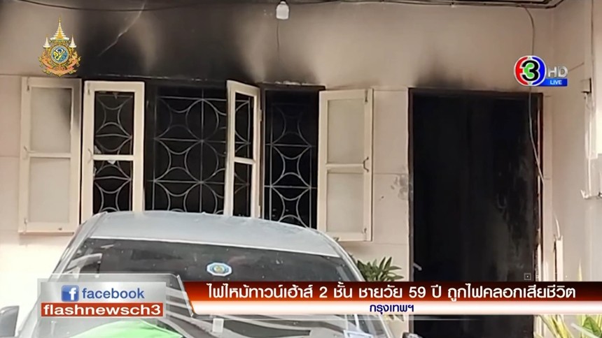 - ไฟไหม้ทาวน์เฮ้าส์ 2 ชั้น ชายวัย 59 ถูกไฟคลอกเสียชีวิต