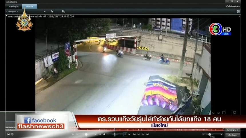 ตำรวจ สภ.ช้างเผือก จังหวัดเชียงใหม่ ติดตามจับกุมแก๊งวัยรุ่น ที่รวมตัวไล่ทำร้ายกลุ่มวัยรุ่นคู่อริ ที่บริเวณถนนป่าต้น-บ้านห่อ ในตัวเมืองเชียงใหม่ ที่มีการแชร์คลิปกันในออนไลน์ได้แล้ว โดยจับกุมได้ทั้งหมด 18 คน ส่วนใหญ่เป็นเยาวชนอายุ 14-18 ปี ยึดมีดสปาต้าได้ 4 เล่ม เจ้าหน้าที่ได้ทำประวัติ ก่อนแจ้งข้อหาดำเนินคดี