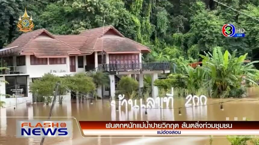 - แม่ฮ่องสอนฝนตกหนัก แม่น้ำปายวิกฤตล้นตลิ่งท่วมชุมชน