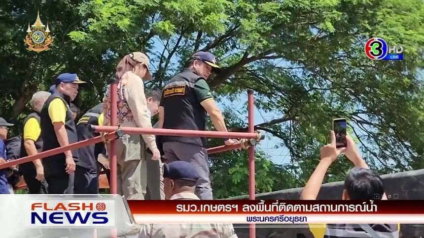 รัฐมนตรีว่าการกระทรวงเกษตรและสหกรณ์ ลงพื้นที่ ติดตามสถานการณ์น้ำ ที่จังหวัดพระนครศรีอยุธยา ยืนยันน้ำเหนือไม่ส่งผลกระทบ ต่อพื้นที่ภาคกลาง รวมถึงกรุงเทพมหานคร ขณะที่การระบายน้ำเขื่อนเจ้าพระยา เสนอปรับเพิ่มการระบายน้ำสูงสุด ประมาณ 2,400 ลูกบาศก์เมตรต่อวินาที เพื่อเตรียมรองรับน้ำ พร้อมเสนอคณะรัฐมนตรี อนุมัติงบ 3700 ล้านบาท เพื่อเยียวยาพื้นที่การเกษตร