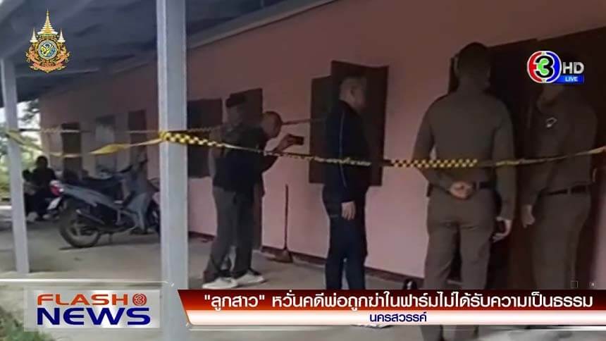 ลูกสาวของนายทณุ อายุ 47 ปี คนงานในฟาร์มปศุสัตว์ อำเภอบรรพตพิสัย นครสวรรค์ ซึ่งถูกทำร้ายร่างกายเสียชีวิตในฟาร์ม หวั่นไม่ได้รับความเป็นธรรม หลังไม่พบหลักฐานในจุดเกิดเหตุ และไม่มีผู้เห็นเหตุการณ์ ส่วนทางคดี ตำรวจได้สอบปากคำญาติทั้งหมดแล้ว ส่วนคนงานที่ฟาร์ม อยู่ระหว่างเรียกตัวมาสอบปากคำทุกคน