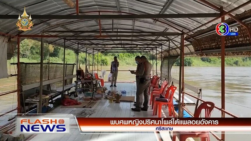 พบศพหญิงปริศนา โผล่ใต้แพลอยอังคารริมแม่น้ำมูล ตำบลน้ำคำ จังหวัดศรีสะเกษ เจ้าของแพ เผยเสร็จจากพิธีลอยอังคาร นำแพเข้าท่า ได้กลิ่นเหมือนปลาตาย มองที่ใต้แพเห็นเป็นแขนคน เจ้าหน้าที่ตรวจสอบ พบเป็นศพหญิงผมยาว สวมแหวนที่นิ้วกลางทั้งสองข้าง อายุประมาณ 25 ถึง 40 ปี คาดเสียชีวิตไม่ต่ำกว่า 2-3 วัน เบื้องต้นไม่พบบาดแผลว่าถูกทำร้าย