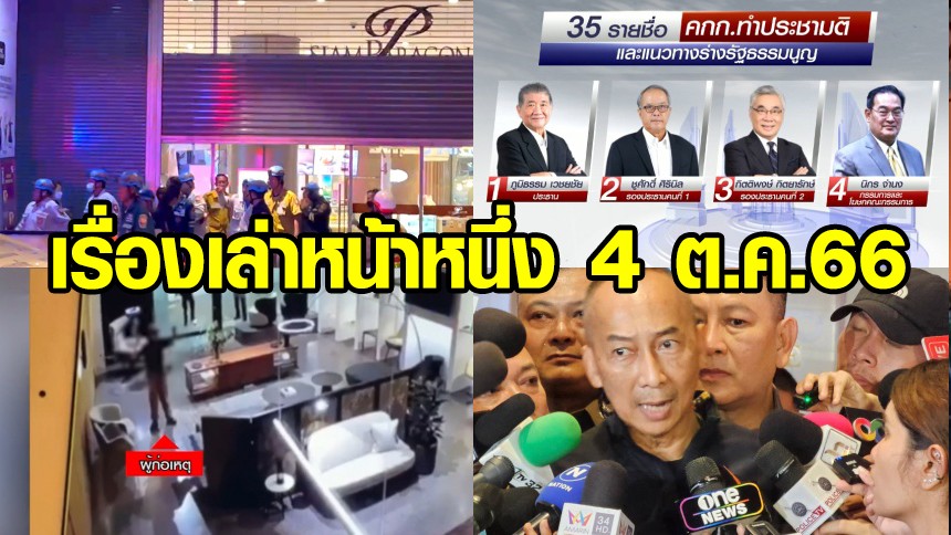 เรื่องเล่าหน้าหนึ่ง 4 ต.ค.66 เด็ก 14 กราดยิงในพารากอน-มติก้าวไกล ไม่ร่วม กก.แก้รธน.-บิ๊กเต่าลุยหย่าศึกวัดบางคลาน