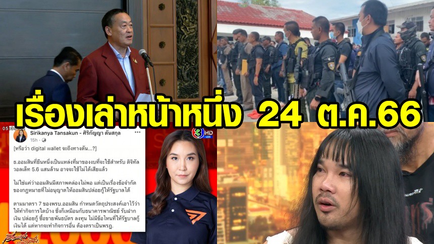 เรื่องเล่าหน้าหนึ่ง 24 ต.ค.66 ศิริกัญญาดักคองบแจกเงินดิจิทัล-ล่าตัวเสี่ยแป้งแหกคุก-สัปเหร่อ 18 วัน 500 ล้าน