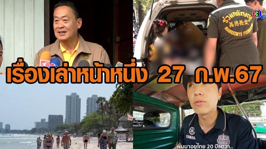 เรื่องเล่าหน้าหนึ่ง 27 ก.พ.67 นายกฯ ตรวจบ้านพัก ทร.-คู่กรณีบุกบ้านอากู๋ ผูกคอดับ-อปป้าฮง เจอตุ๊กตุ๊กเรียก 1,200
