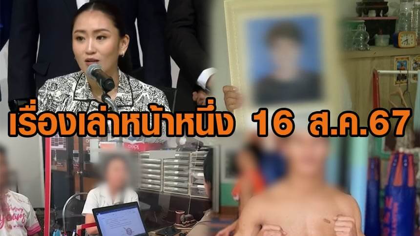 เรื่องเล่าหน้าหนึ่ง 16 ส.ค.67 หนุนอุ๊งอิ๊งเป็นนายกฯ ใหม่-วิศวะ ม.ดังรับน้องโหด-นักมวยดังหลอนยาคลั่ง